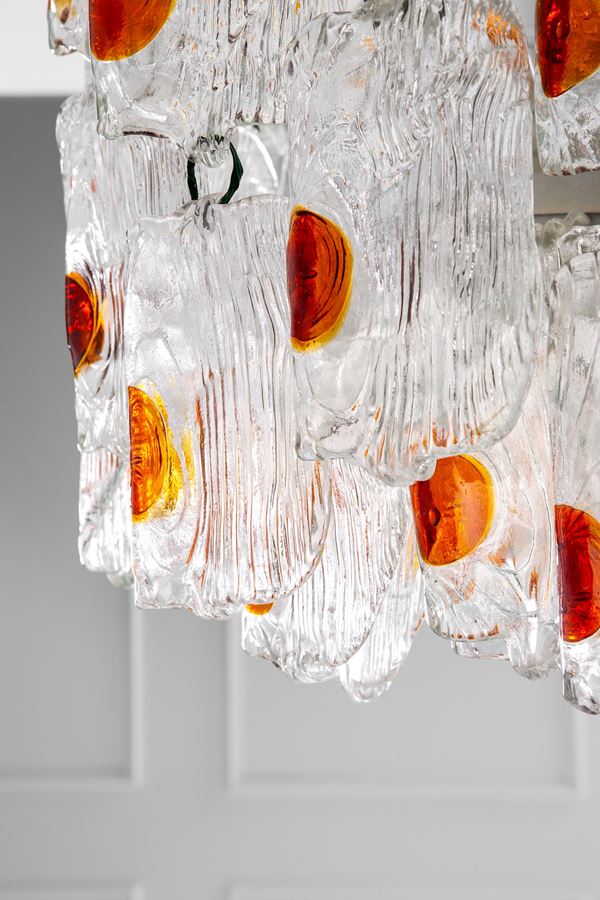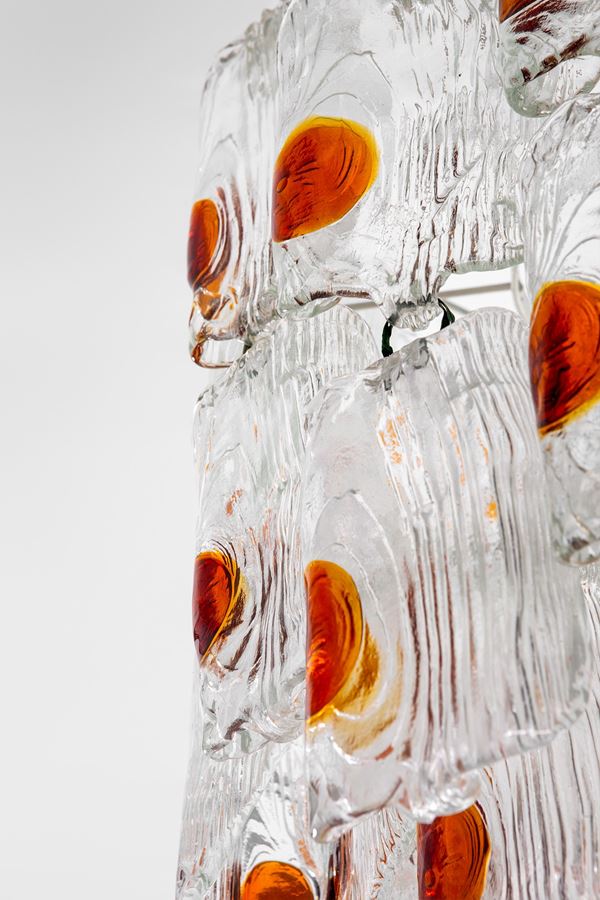 Metallo verniciato, elementi in vetro spesso corteccia trasparente con macchia di colore.