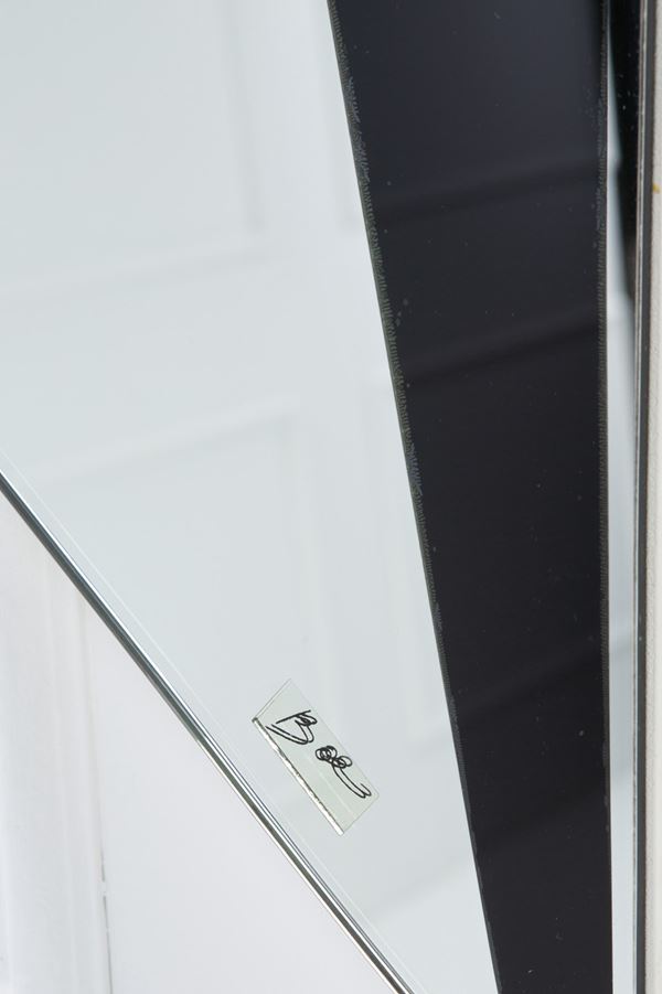 Vetro specchiato e serigrafato.