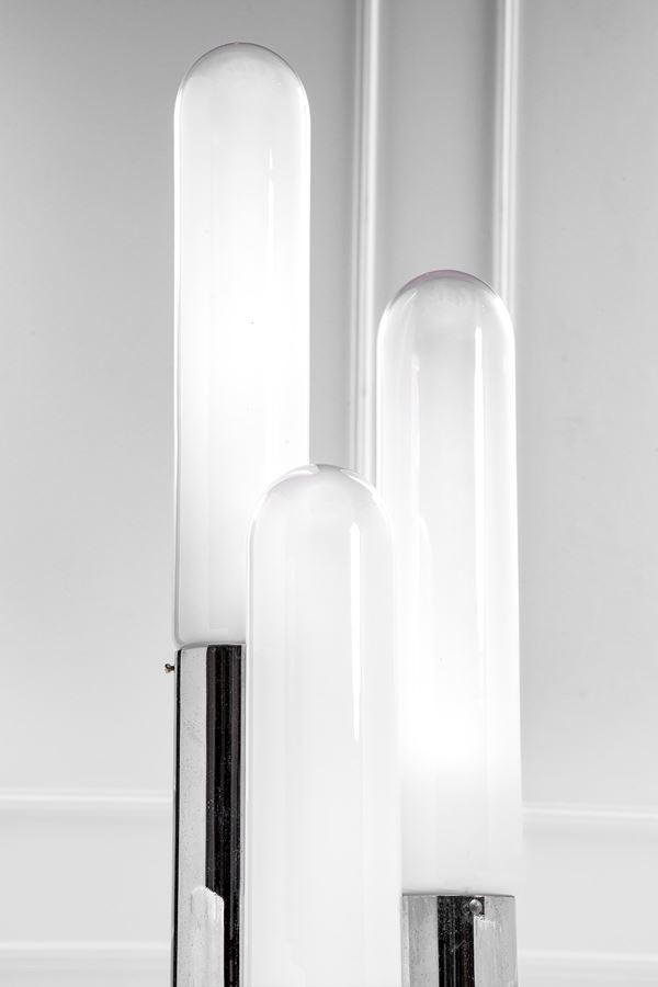 Metallo cromato, vetro lattimo sfumato.