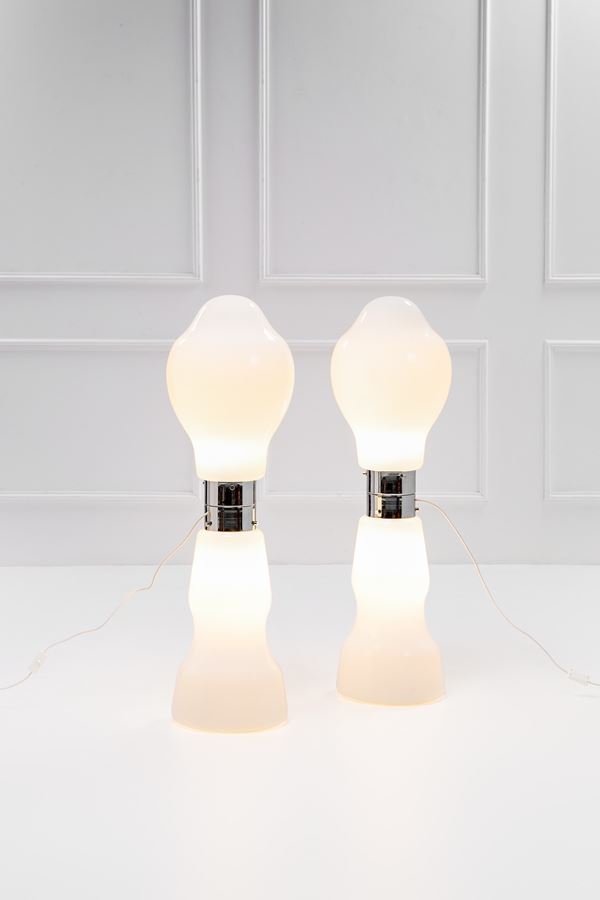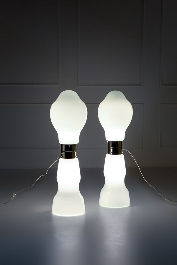 Vetro opalino sfumato, metallo cromato.