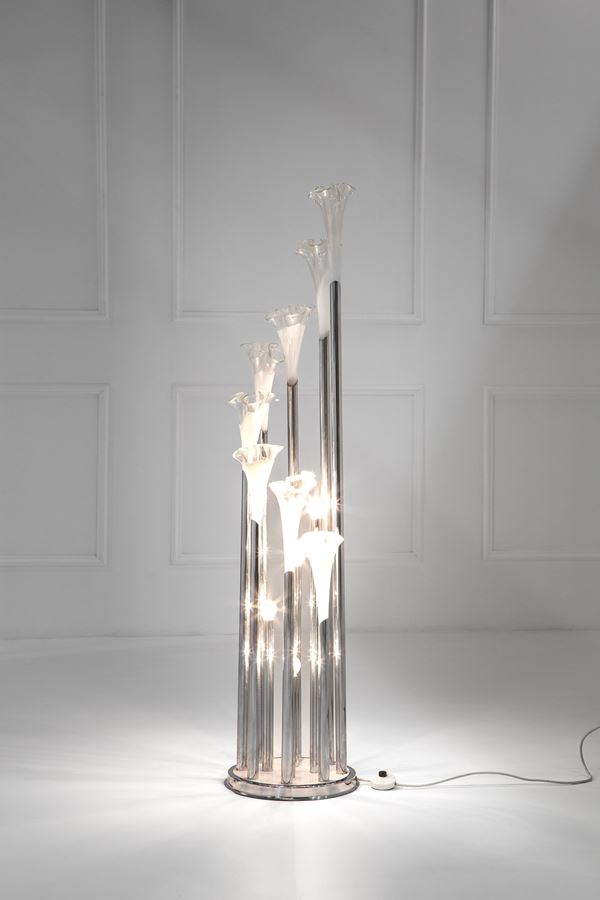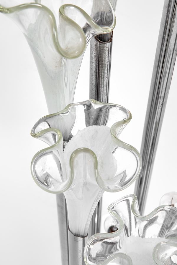 Metallo cromato, vetro trasparente con sfumature opaline.