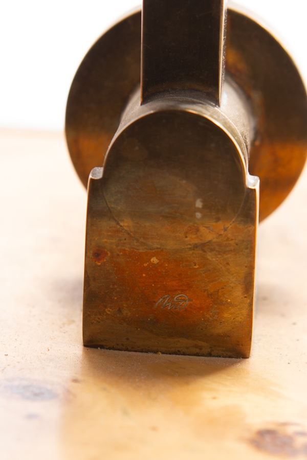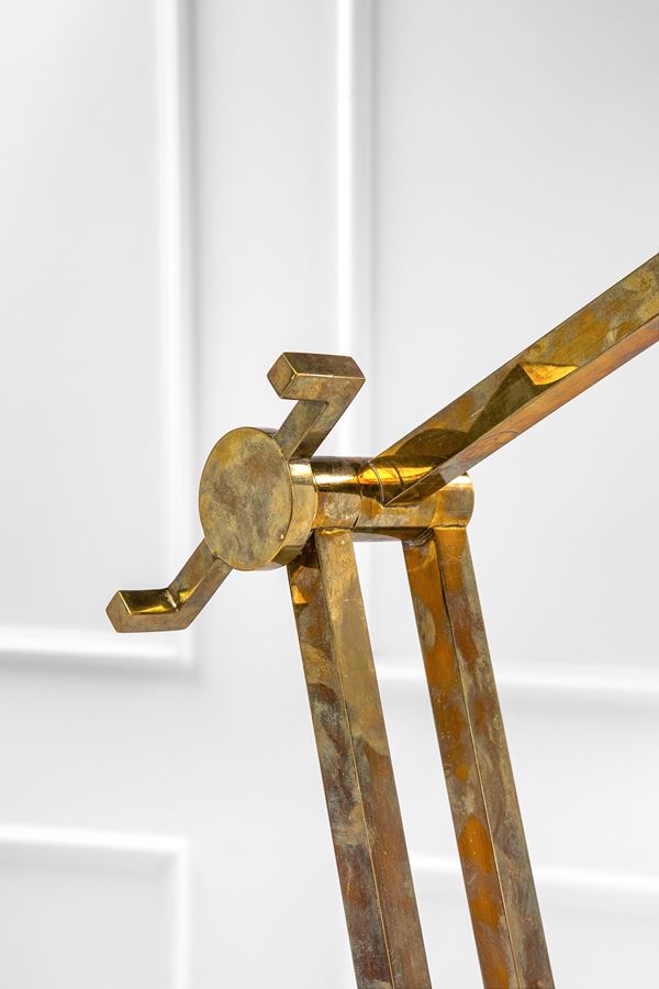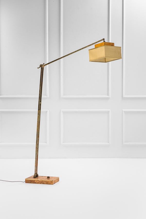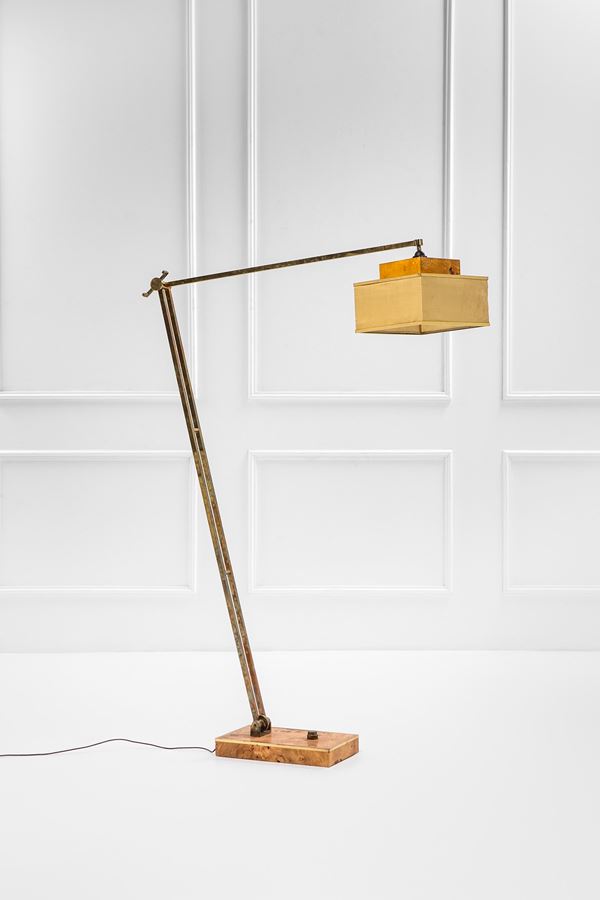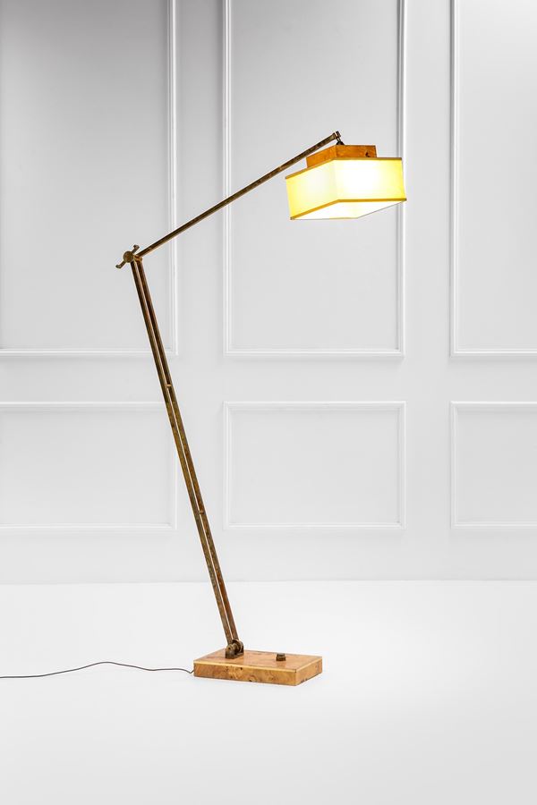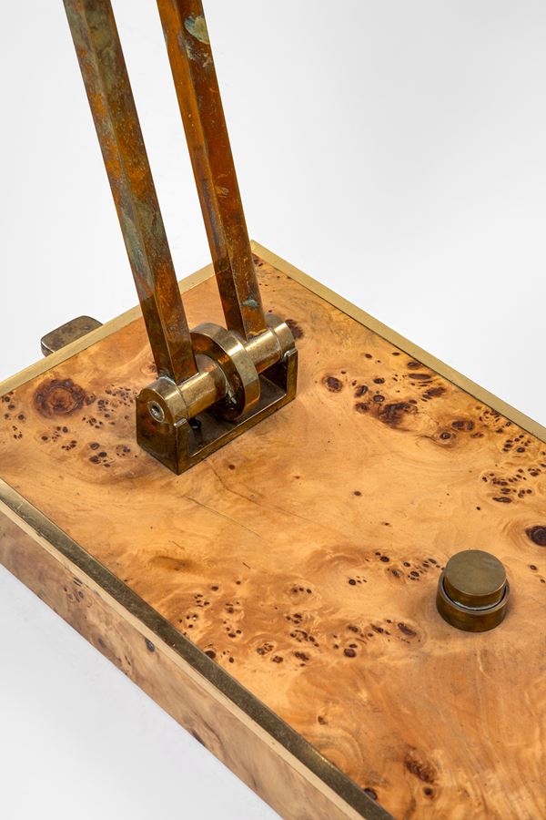 Ottone lucido, legno impiallacciato in radica, tessuto.