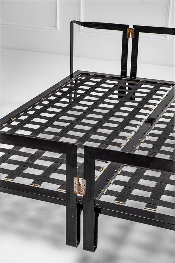 Acciaio laccato, rete d'acciaio incorporata nella struttura.