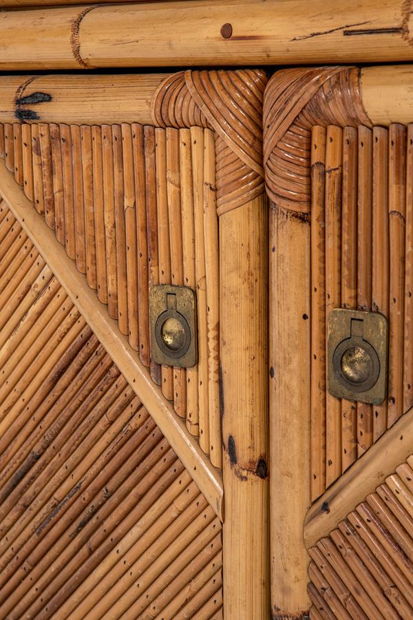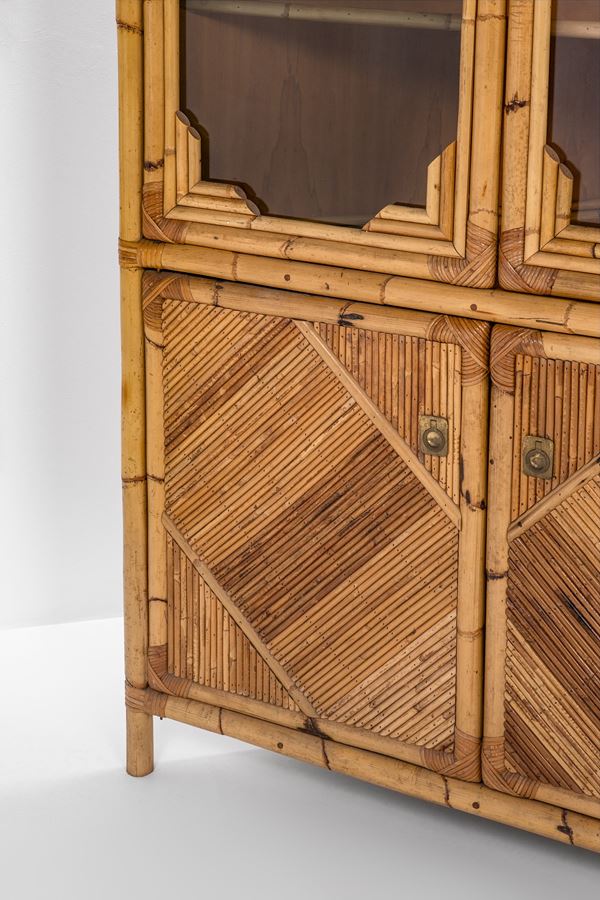 Bamboo, canna d'India, midollino, legno, ottone, vetro trasparente.