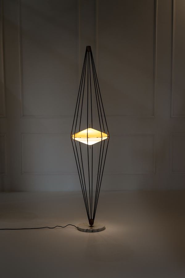 Metacrilato sagomato, ottone, metallo verniciato, marmo.