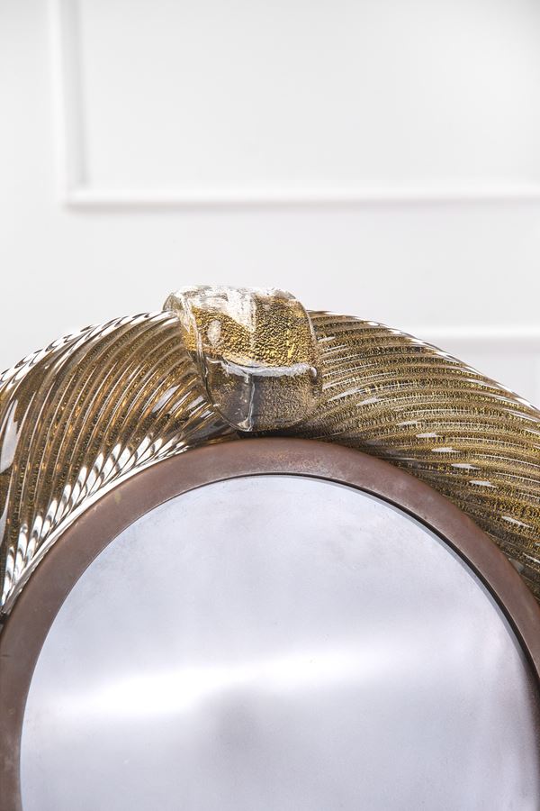 Vetro di Murano lcon inclusione d'oro avorato a torchon, ottone.