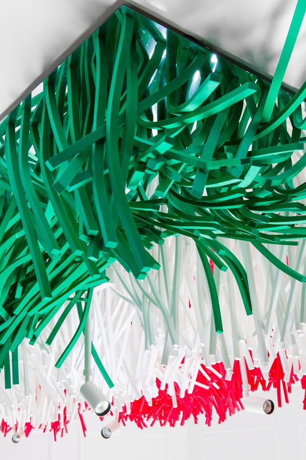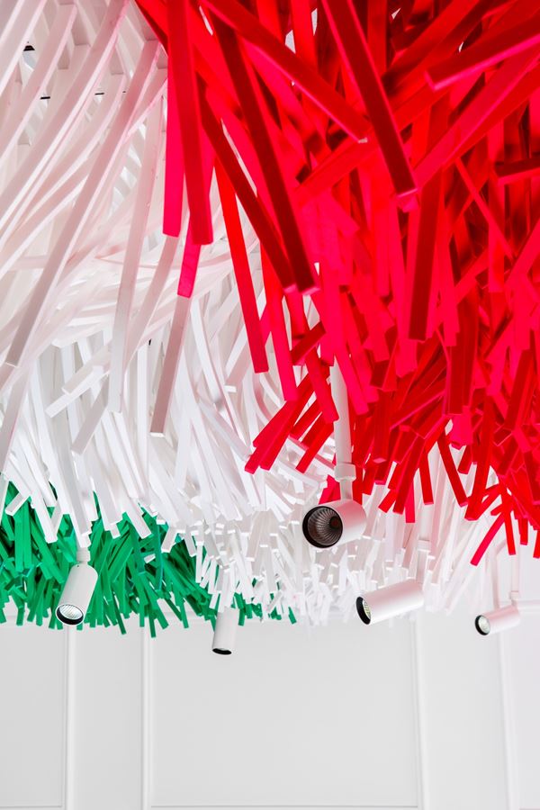 Metallo verniciato, schiuma poliuretanica estrusa, faretti Flos.