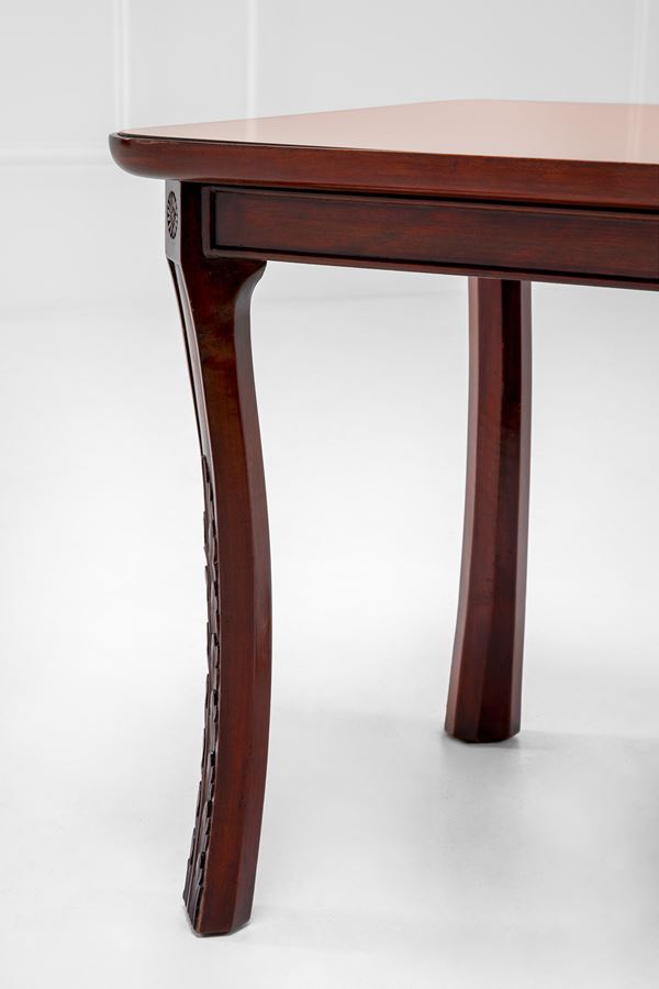 Legno tinto scolpito, vetro colorato specchiato.
