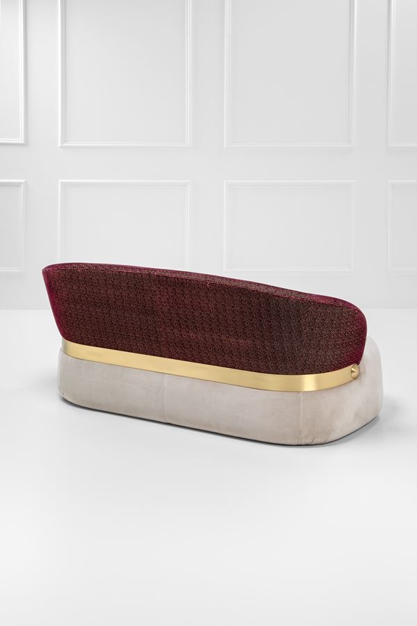 Legno di pioppo, ottone spazzolato zapponato, tessuto.