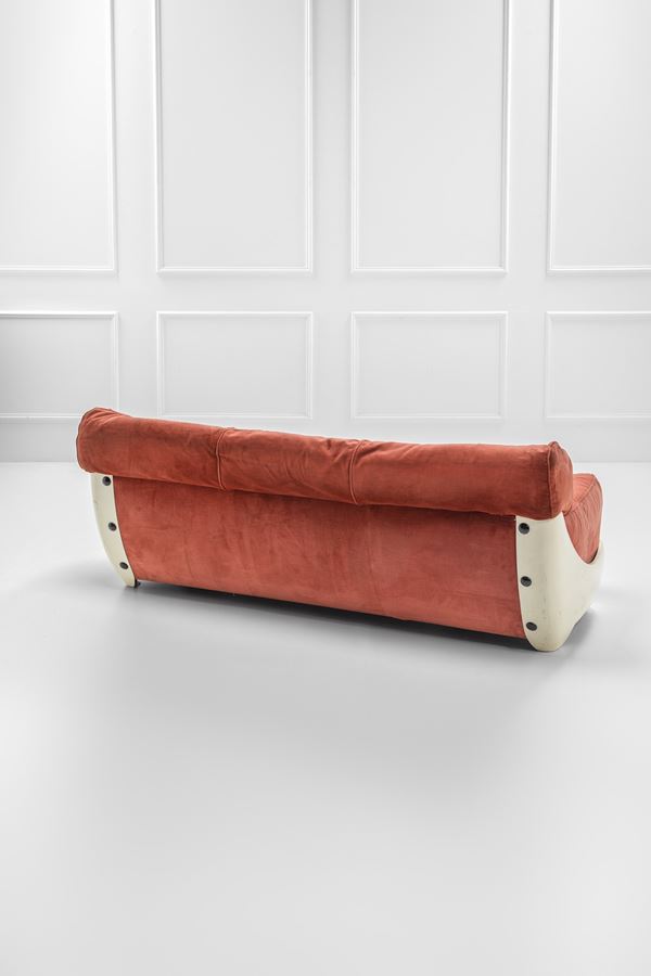 Struttura in legno, scocca laterale in resina plastica, tessuto.