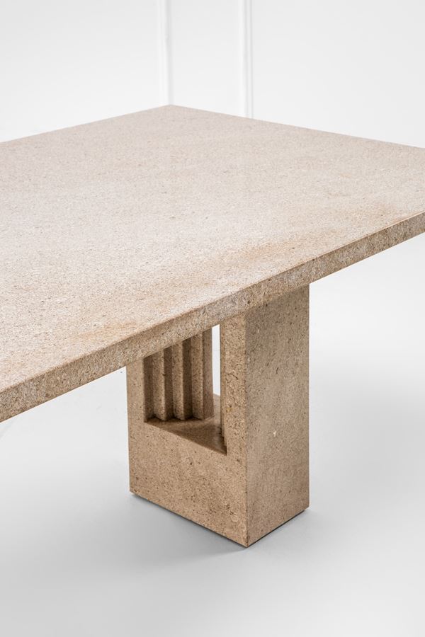 Blocchi di marmo scavati e fresati, piano in marmo di forte spessore.