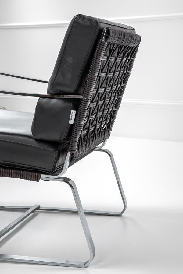 Metallo cromato, poliuretano espanso, pelle.
