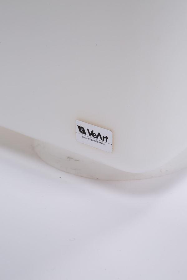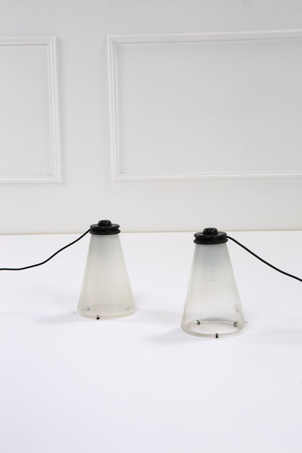 Vetro di Murano sfumato lievemente iridato, metallo verniciato.