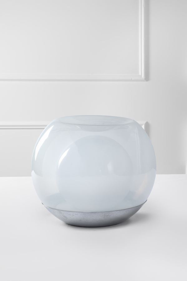 Metallo cromato, vetro bianco semitrasparente.