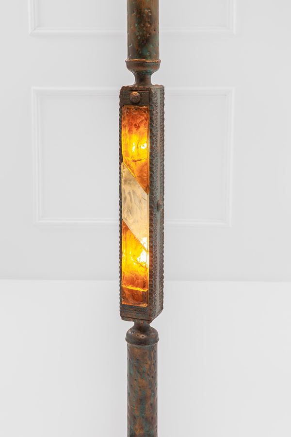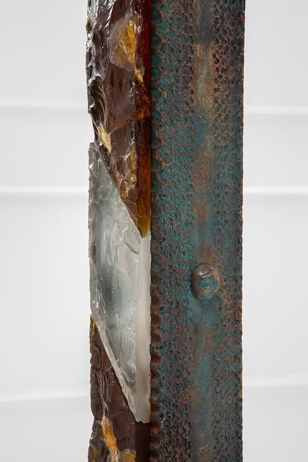 Ferro forgiato e modellato, vetro lavorato a spacco.