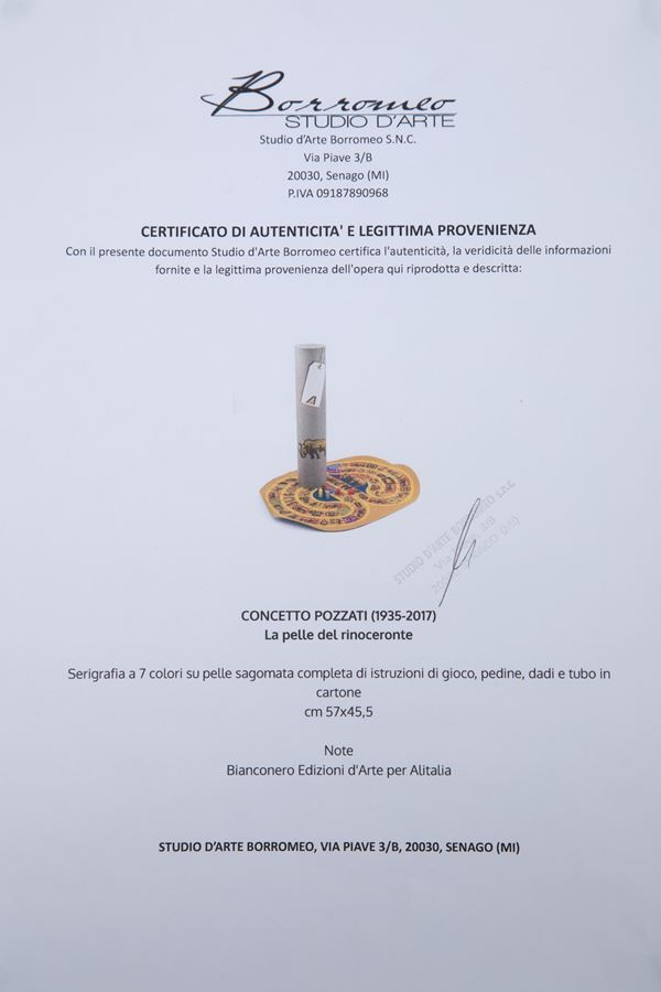 Certificato di autenticità dello Studio d'Arte Borromeo.