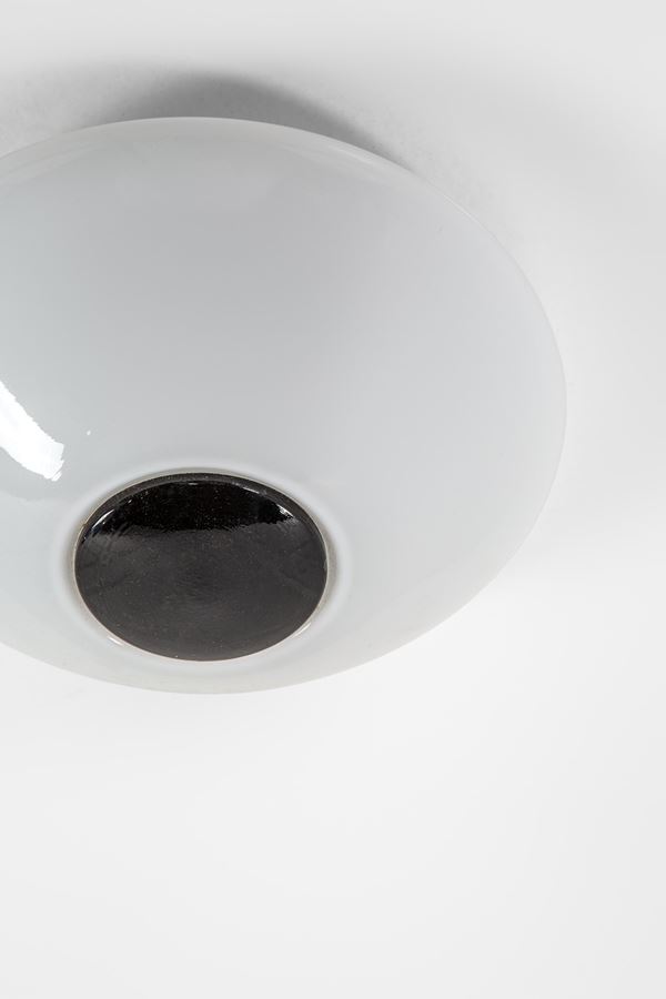 Vetro lattimo, vetro nero, metallo vernciato.