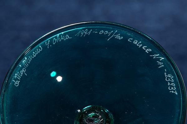 Firma incisa a punta "de Majo Murano Y. Ohira 1991 001/100 calice n. 11 - 23237".