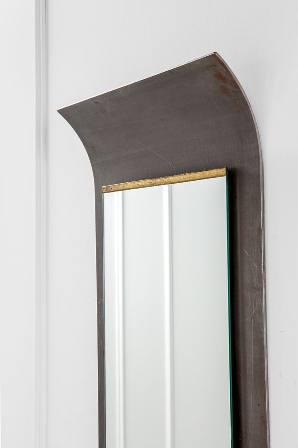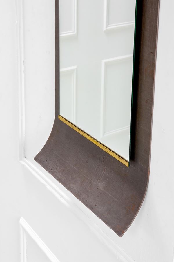 Metallo ossidato curvato, vetro specchiato, ottone.