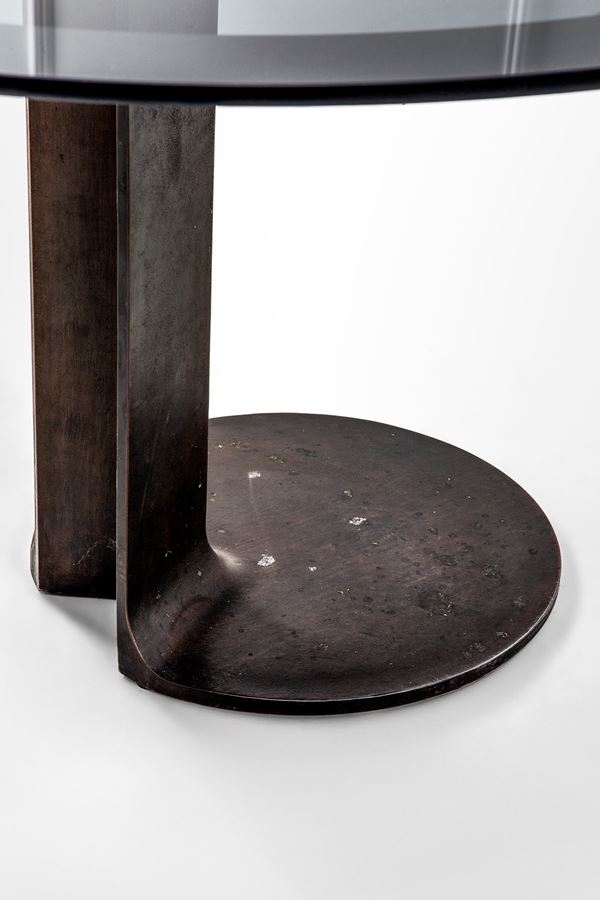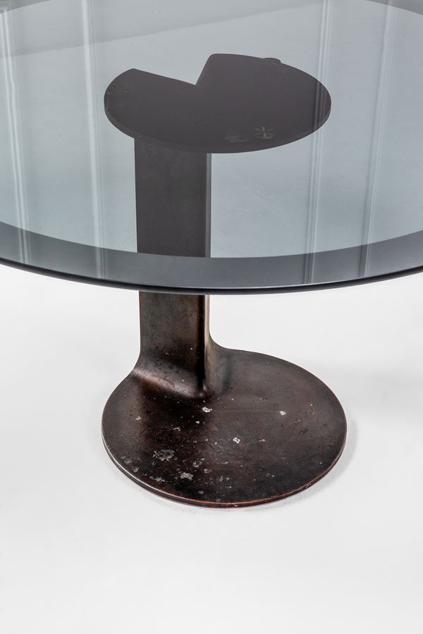 Fusione in lega di metallo brunito, cristallo molato fumé.