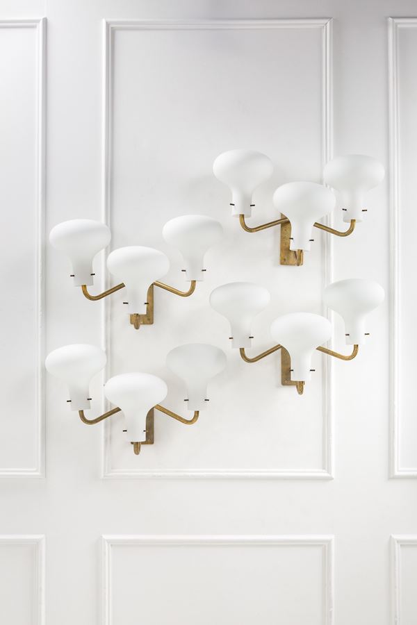 Quattro lampade da parete a tre luci mod. Lp12 b "Galleria"