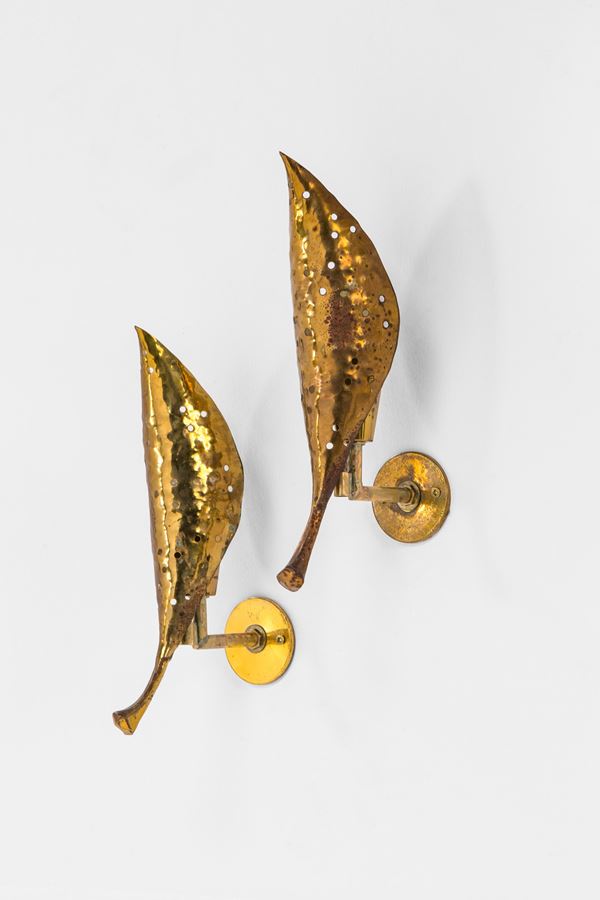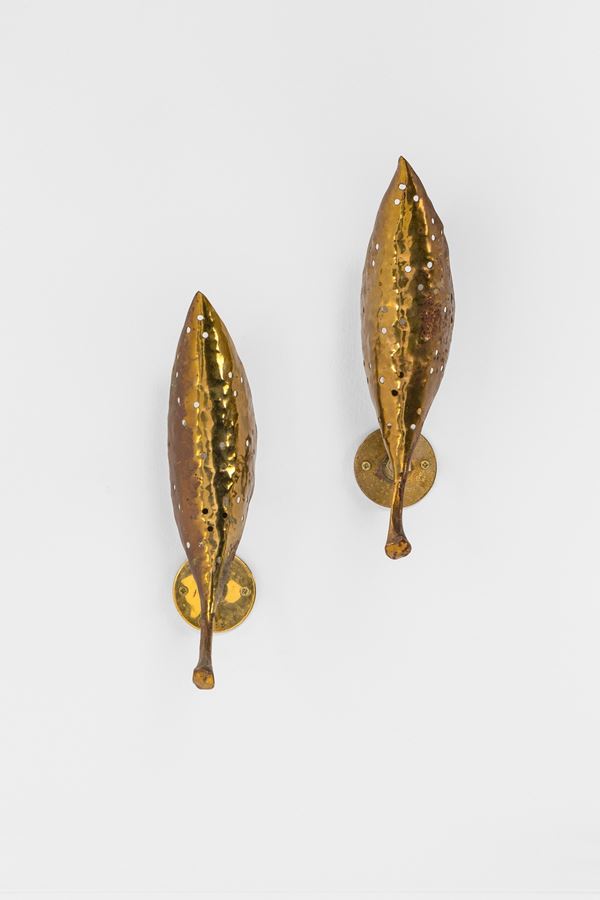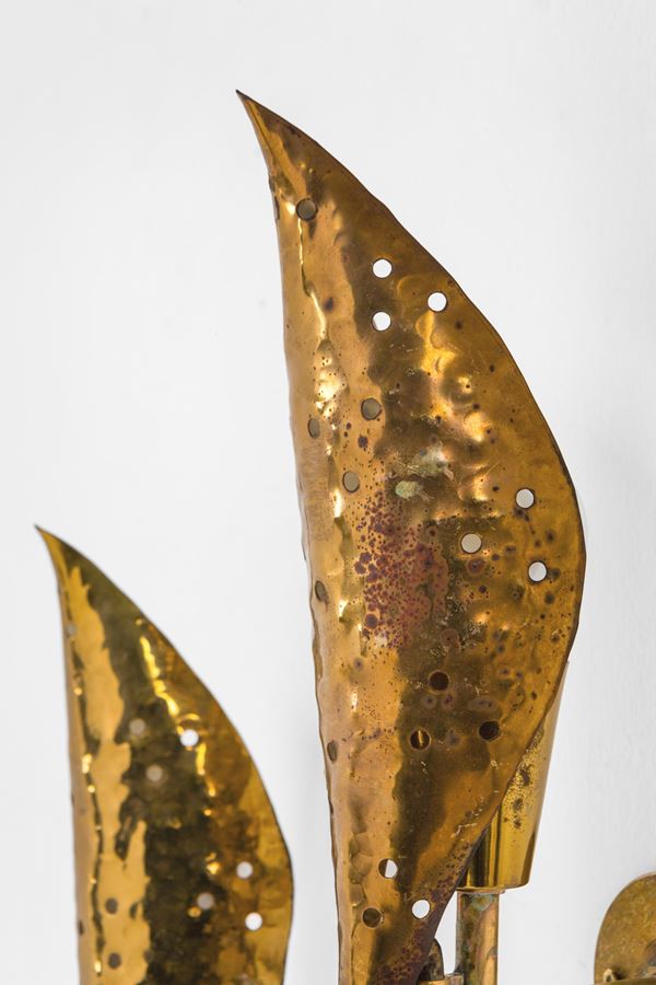 Ottone dorato lavorato a sbalzo, traforato e verniciato internamente.