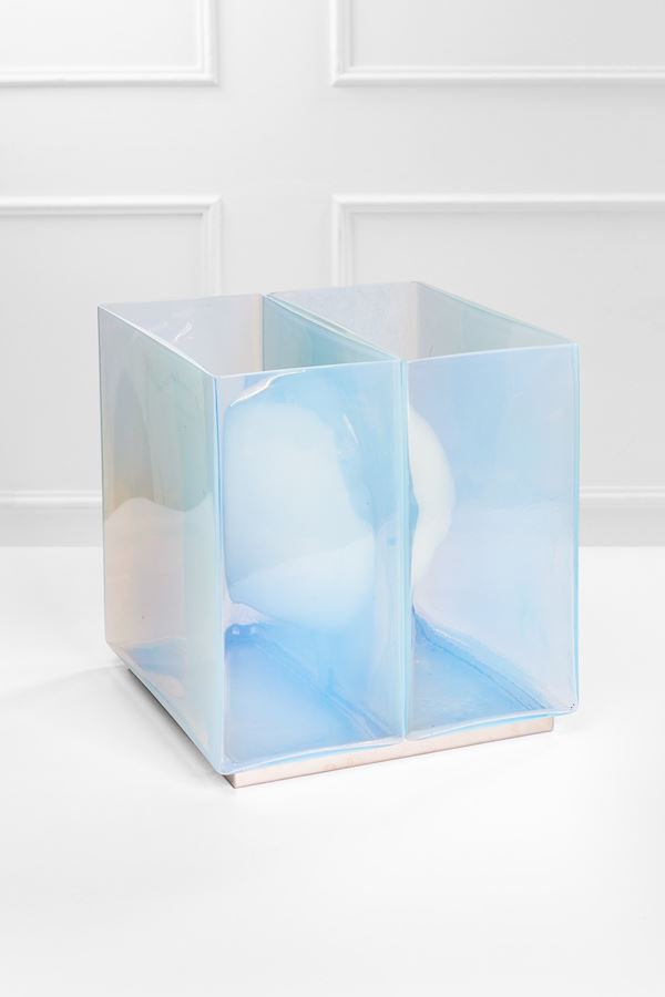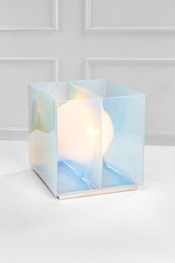 Vetro iridescente, vetro opalino, ottone nichelato.