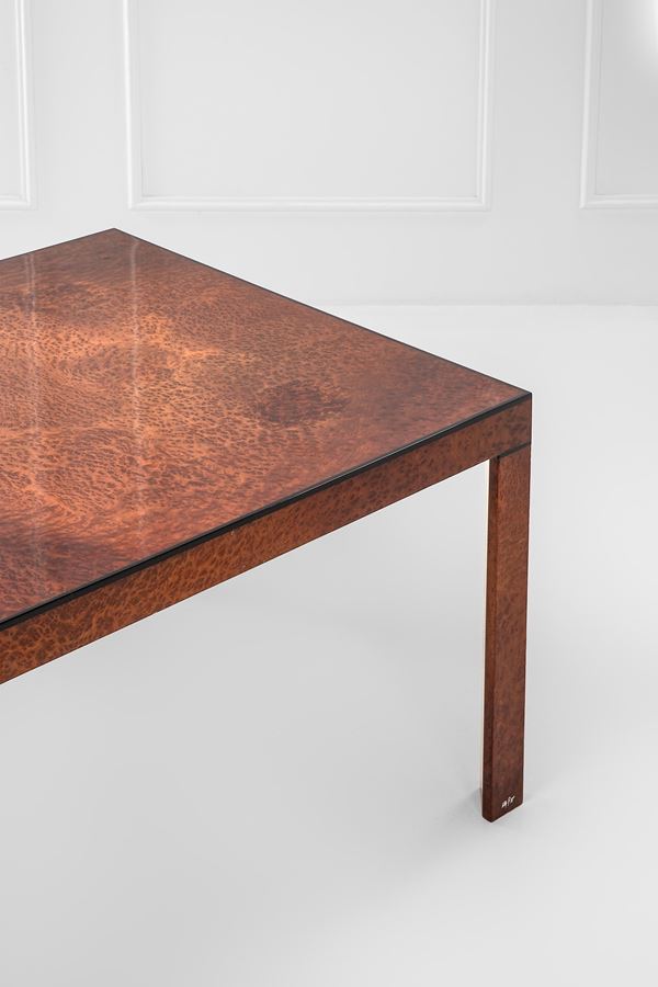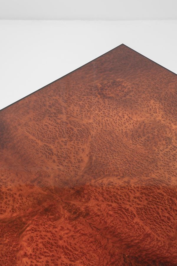 Legno impiallacciato in radica, legno laccato.