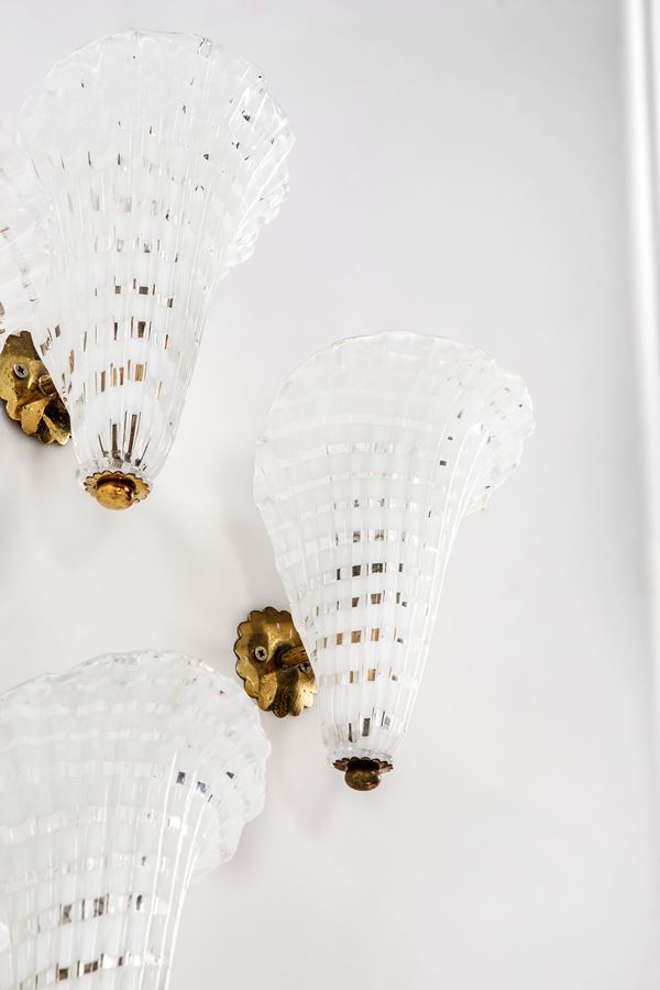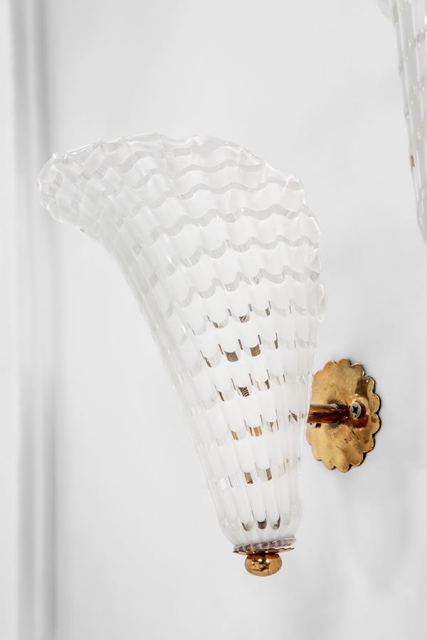 Vetro a coste trasparente con fasce in vetro lattimo, ottone.