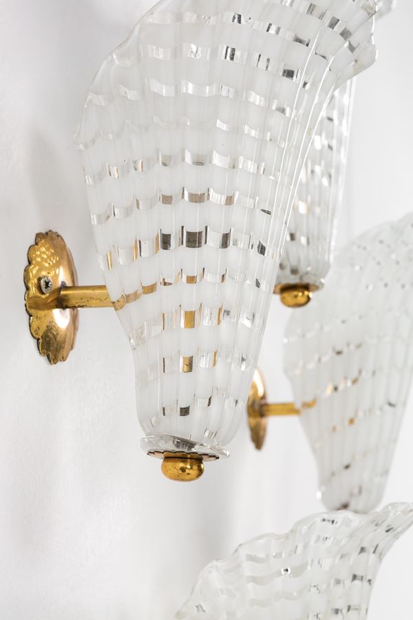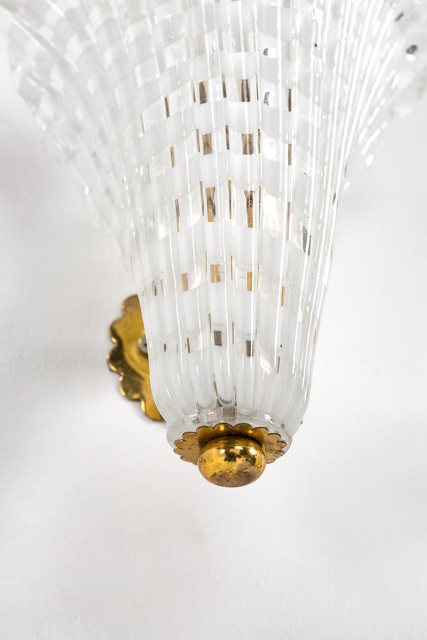 Vetro a coste trasparente con fasce in vetro lattimo, ottone.