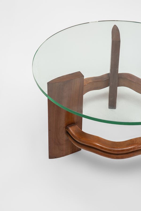 Legno massello, legno massello sagomato, cristallo molato di forte spessore.
