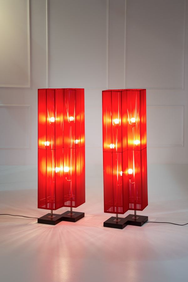 Legno verniciato, metallo cromato, filo di tessuto sintetico.