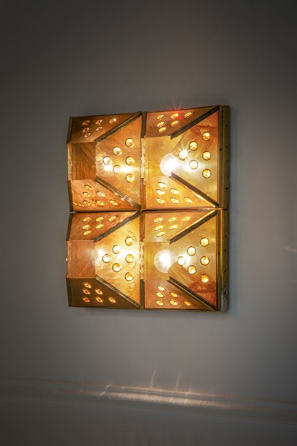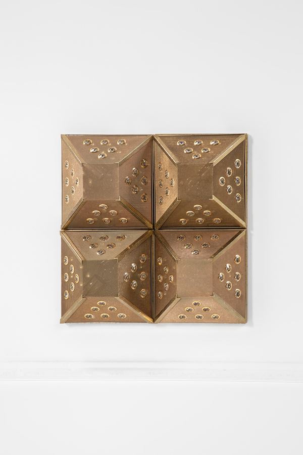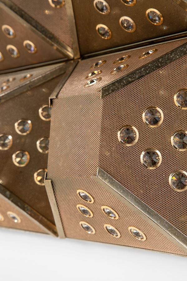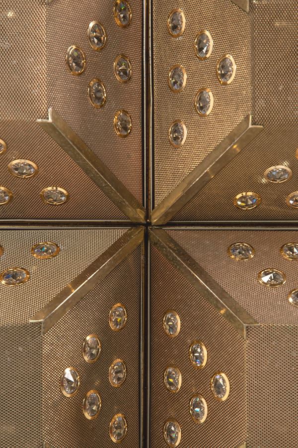 Ottone, rete in ottone, elementi in vetro tagliati a diamante.