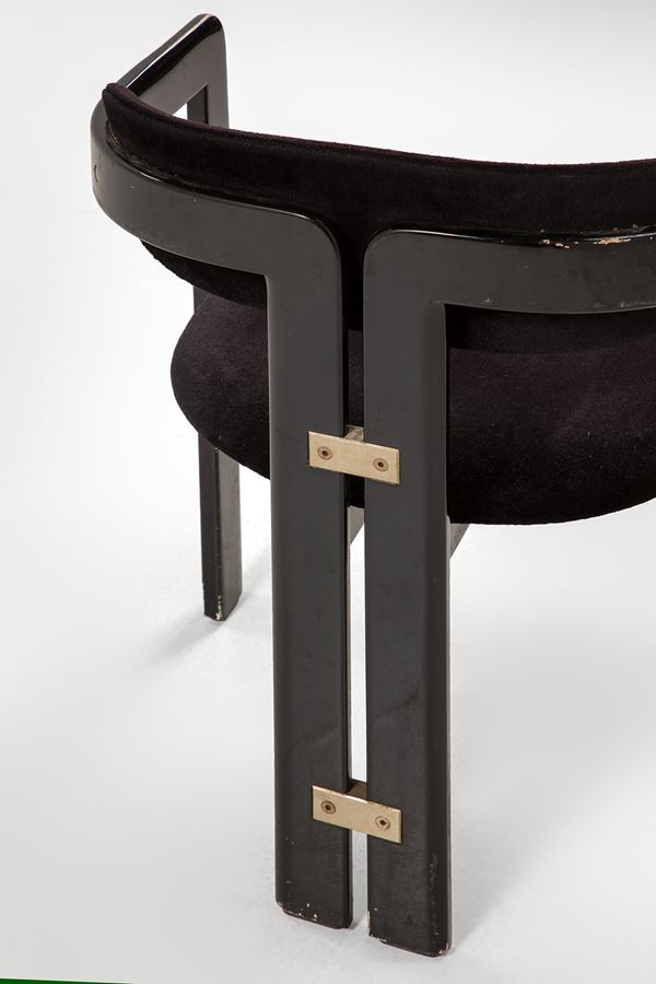 Legno tinto, ottone, tessuto.