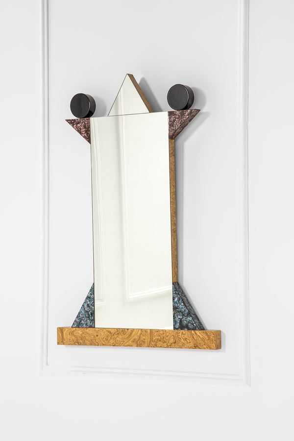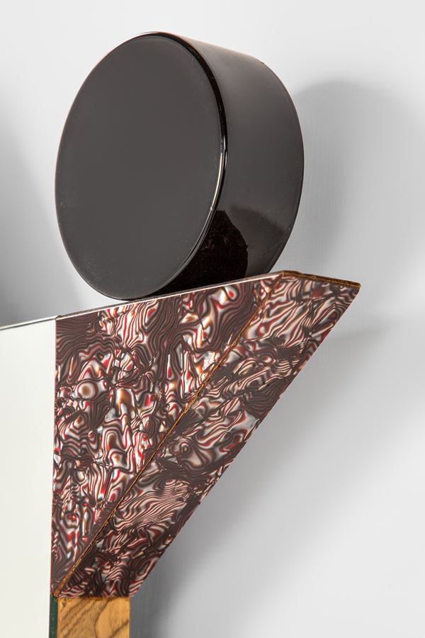 Targhetta metallica Memphis Milano, Ettore Sottsass, 1984, made in Italy.