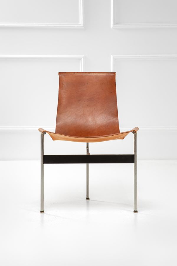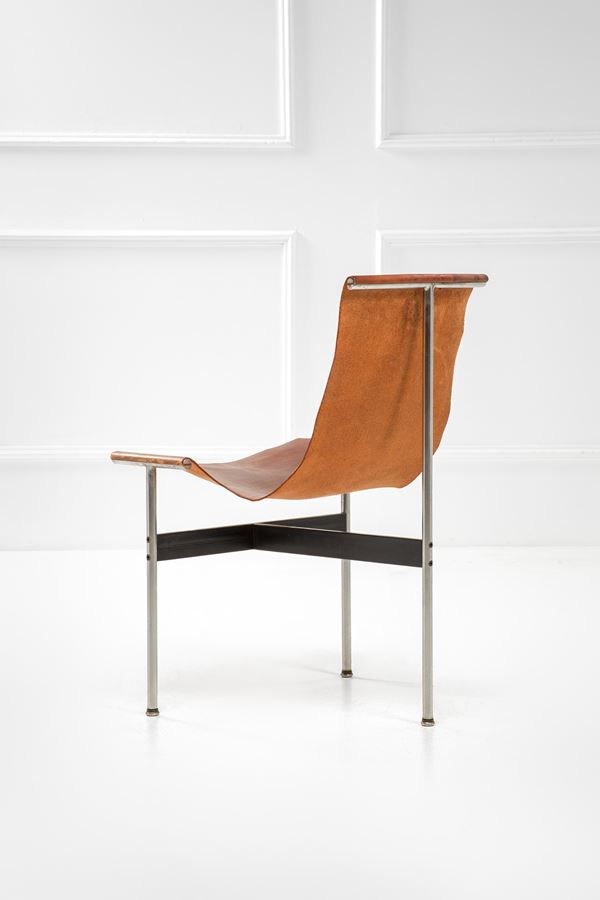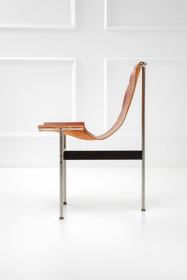 Acciaio tubolare cromato, profilato di acciaio verniciato, cuoio.