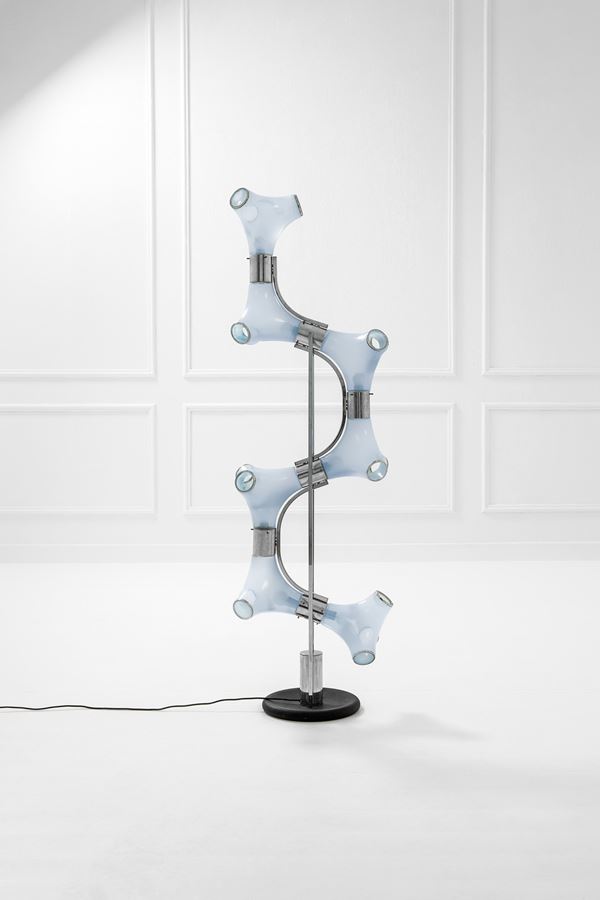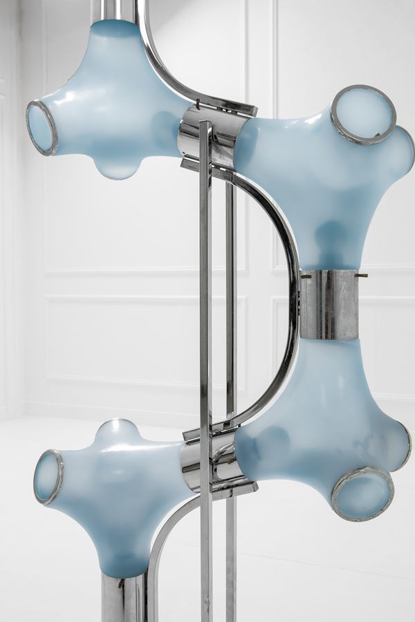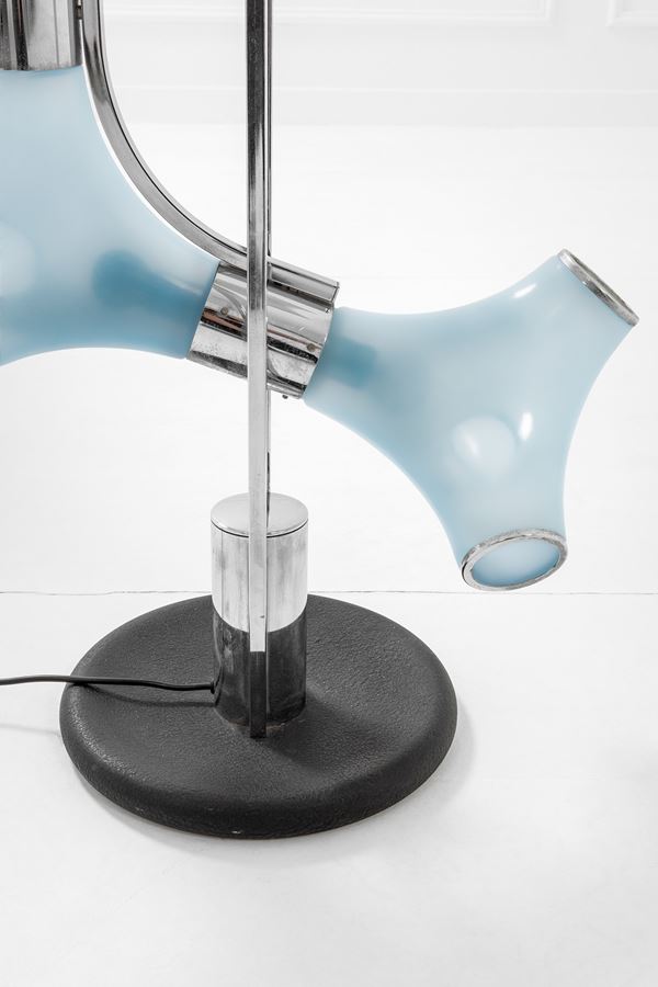 Metallo cromato, vetro soffiato opalino, metallo verniciato.
