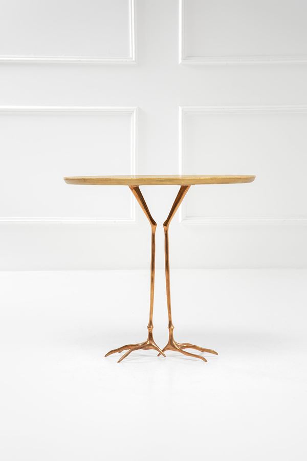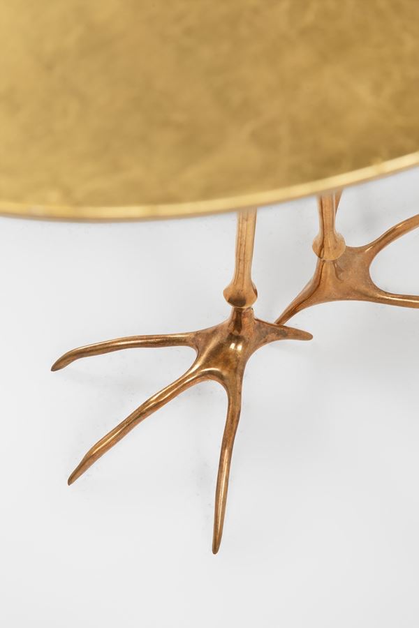 Fusione di bronzo lucidato, legno rivestito in foglia d'oro.
