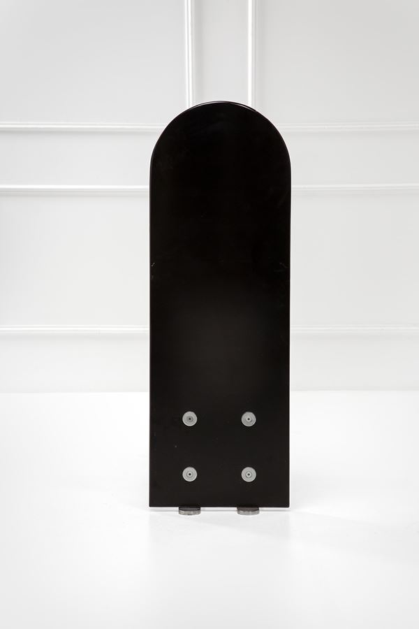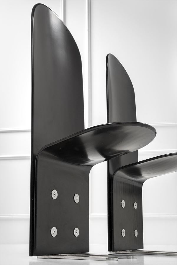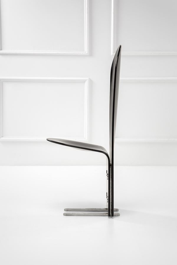 Metallo cromato, compensato curvato e laccato.