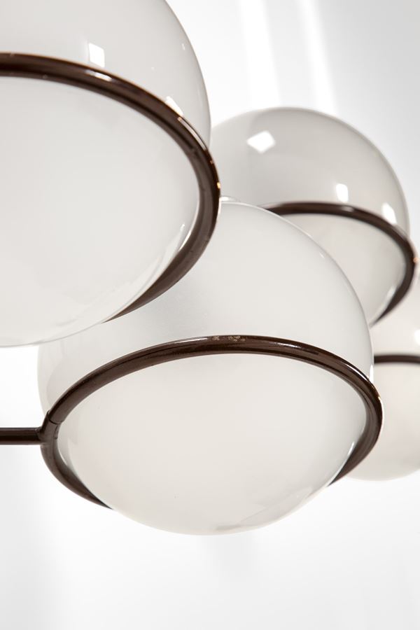 Metallo verniciato, alluminio ossidato, vetro satinato.