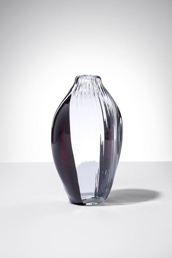 Vetro soffiato a canne cristallo con fasce laterali nere.