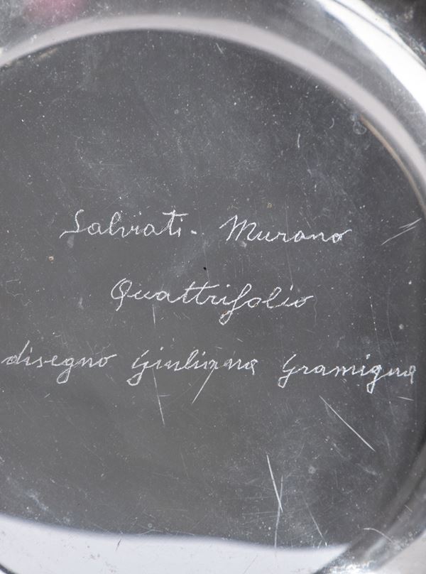 Firma incisa a punta Salviati Murano Quattrifolio disegno Giuliana Gramigna.