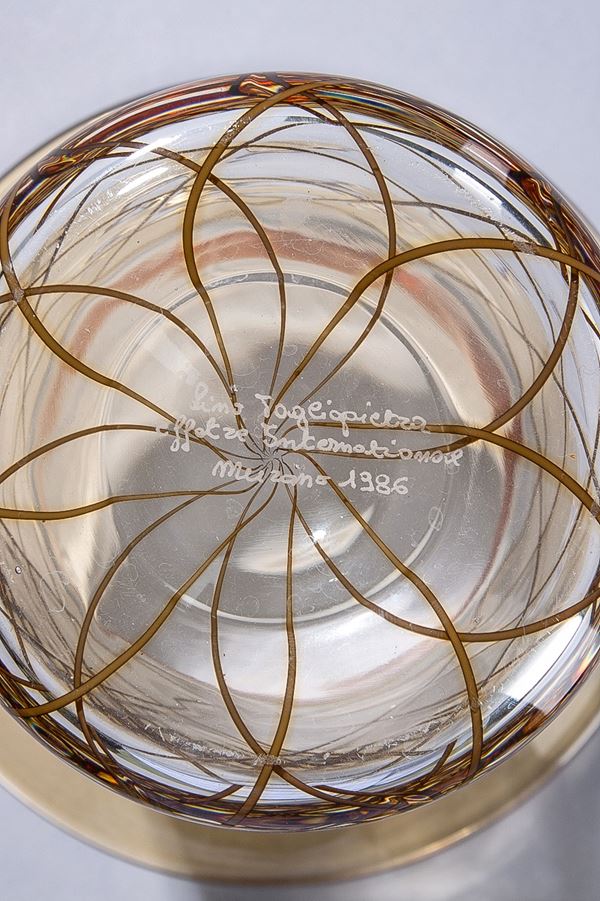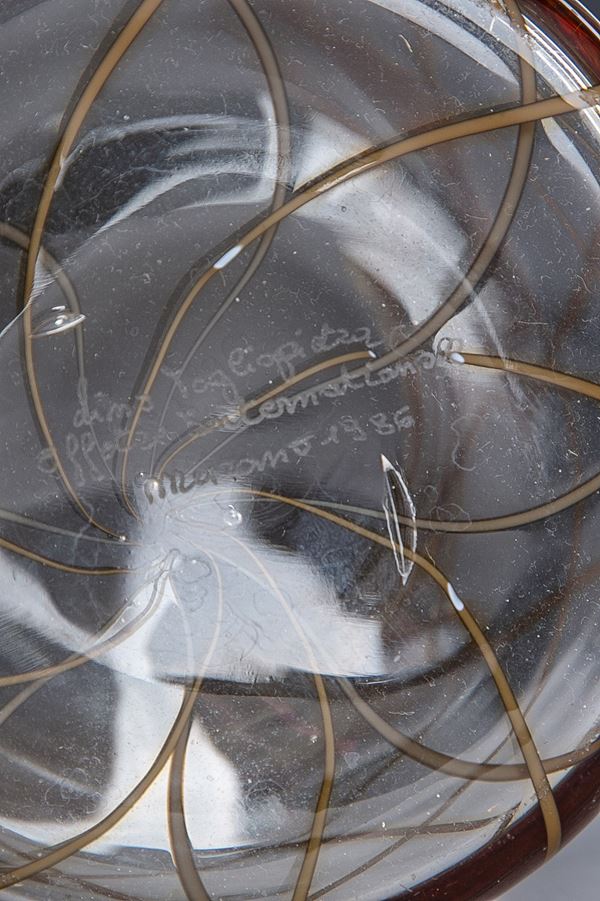 Firma incisa a punta Lino Tagliapietra Effetre International, Murano 1986.