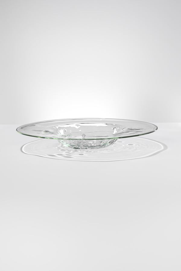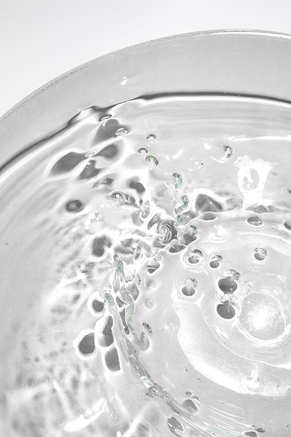 Vetro cristallo soffiato con segnature verso l’interno eseguite per puntatura a caldo durante la lavorazione.