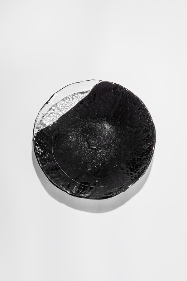 Vetro soffiato ad incalmo in pasta vitrea nera e cristallo.