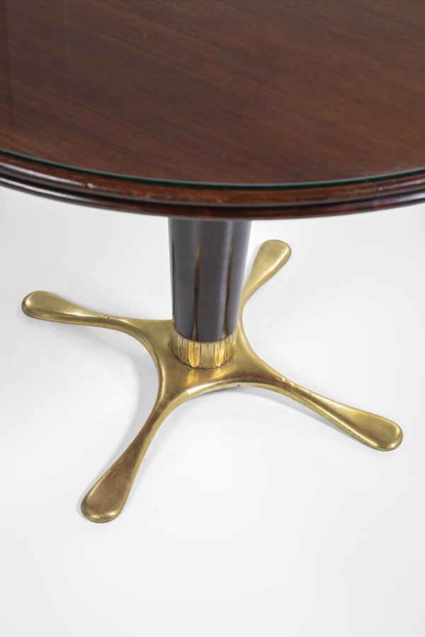 Legno impiallacciato, legno ebanizzato scolpito, ottone cesellato, vetro.