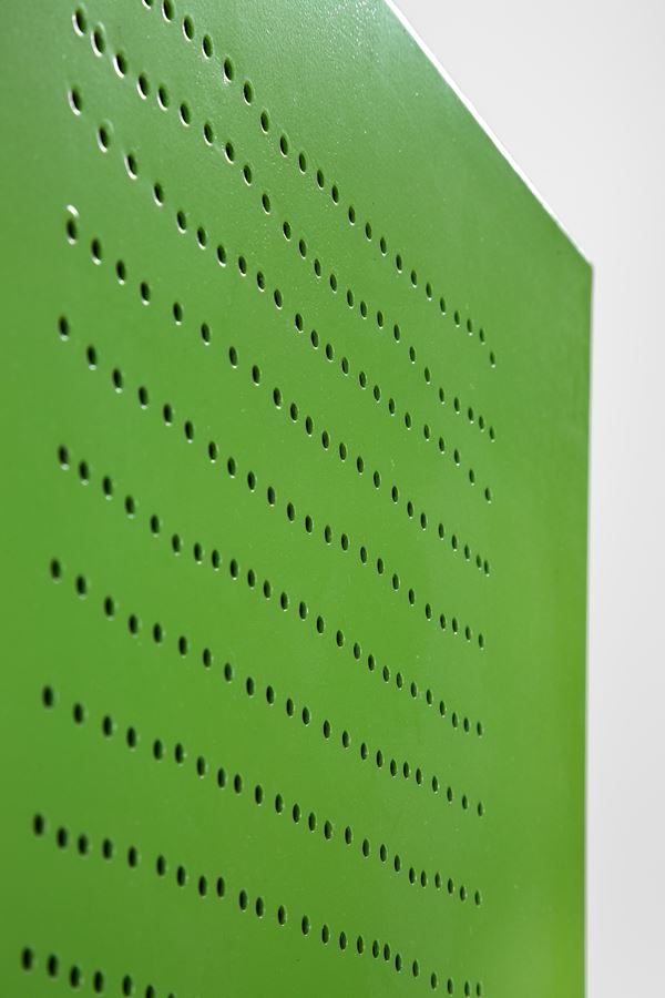 Metallo piegato, saldato e verniciato.