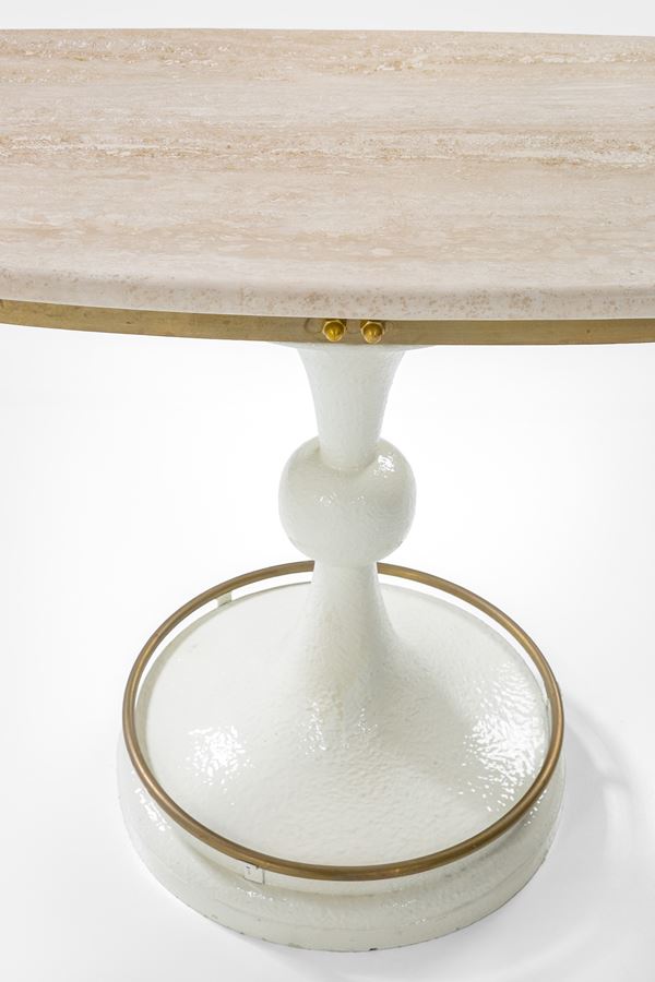 Metallo laccato, ottone, travertino.