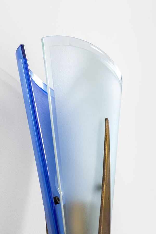 Vetro curvato satinato, vetro curvato colorato, ottone.