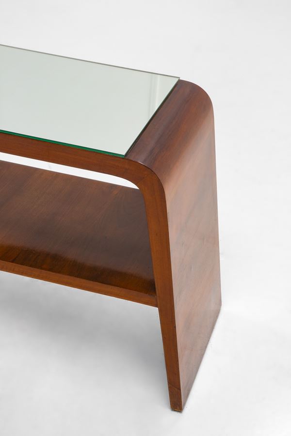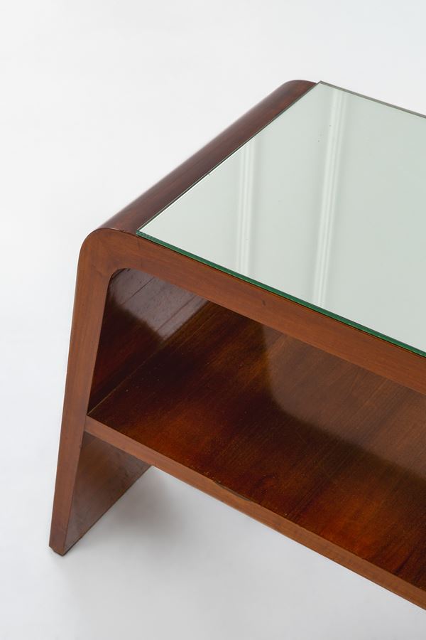 Legno di noce, cristallo specchiato.